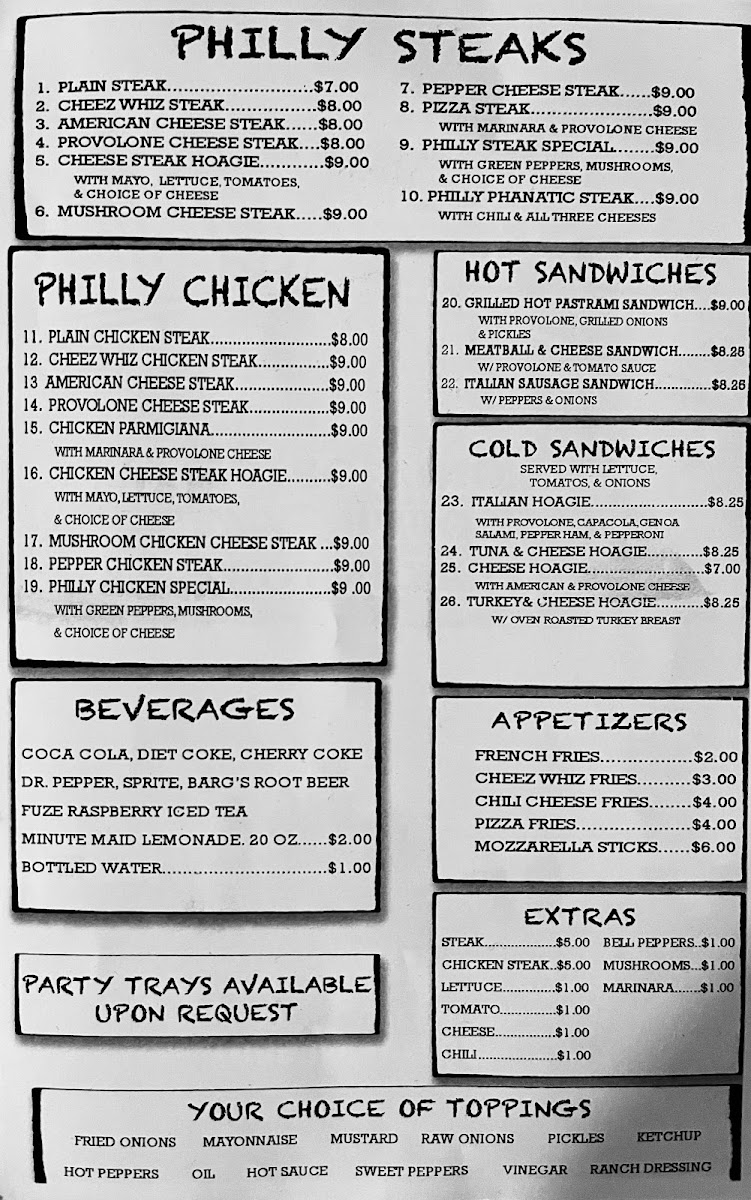 Introducing the menu of Straight From Philly STEAKOUT, where authenticity meets flavor in Henderson, NV! This inviting eatery specializes in classic Philadelphia cheesesteaks, prepared with high-quality ingredients and served with a side of love. Customers rave about the rich, gooey Cheez Whiz and savory provolone options that tantalize taste buds. From the spicy chili cheese fries to the delectable Parmesan fries, every dish complements the star of the menu—an array of hearty sandwiches.